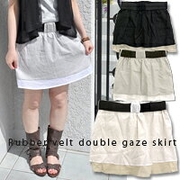 ガーゼ素材でふんわりオシャレなシルエット♪モノトーンだからモードテイストにもハマっちゃう!!ゴムベルト付ダブルカラーポケットスカート